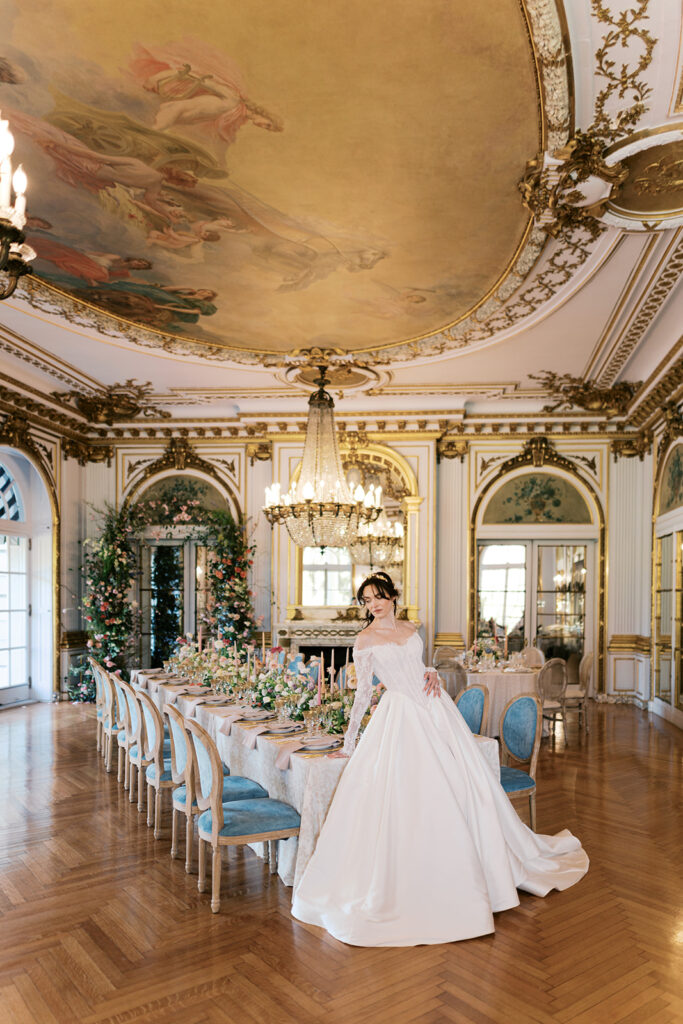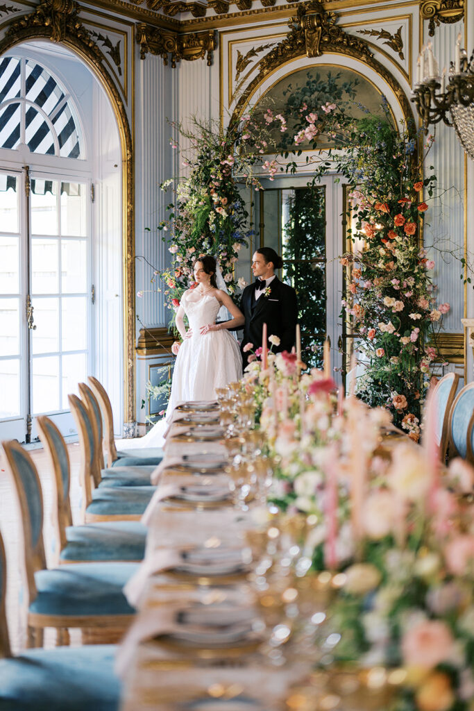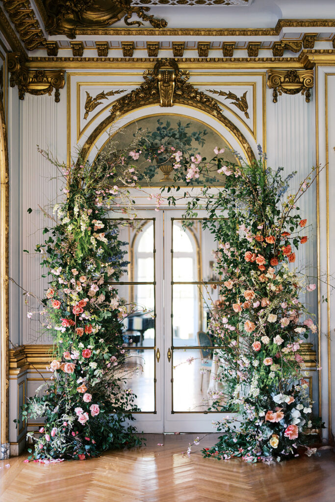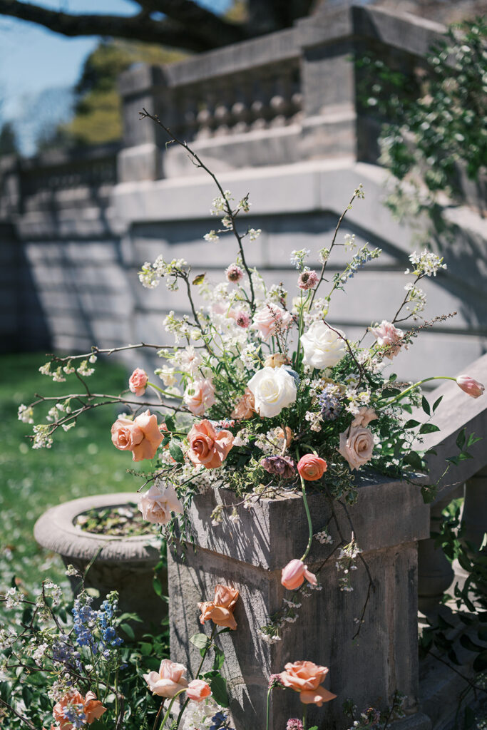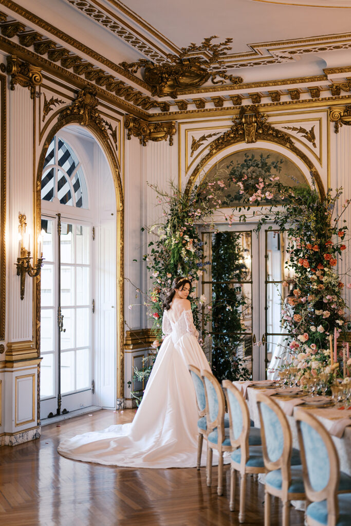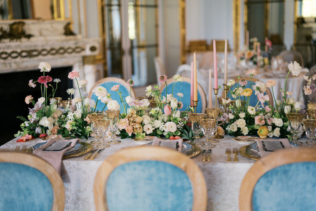 Kim Bakke of A Cottage Gardener created meadow-inspired centerpieces that truly took my breath away. Her work felt like it grew naturally out of the Music Room’s grandeur. The luxury, whimsy, and romance she brought to the space was unforgettable. The soft yet eye-catching floral designs she arranged are the perfect inspiration for your spring wedding color palette!