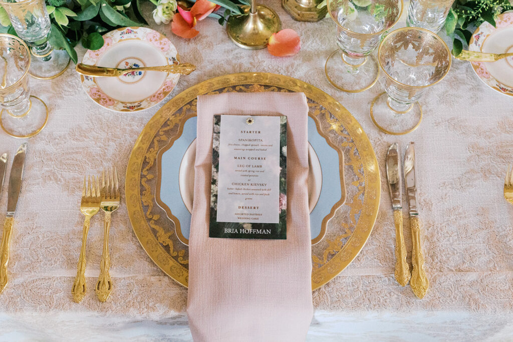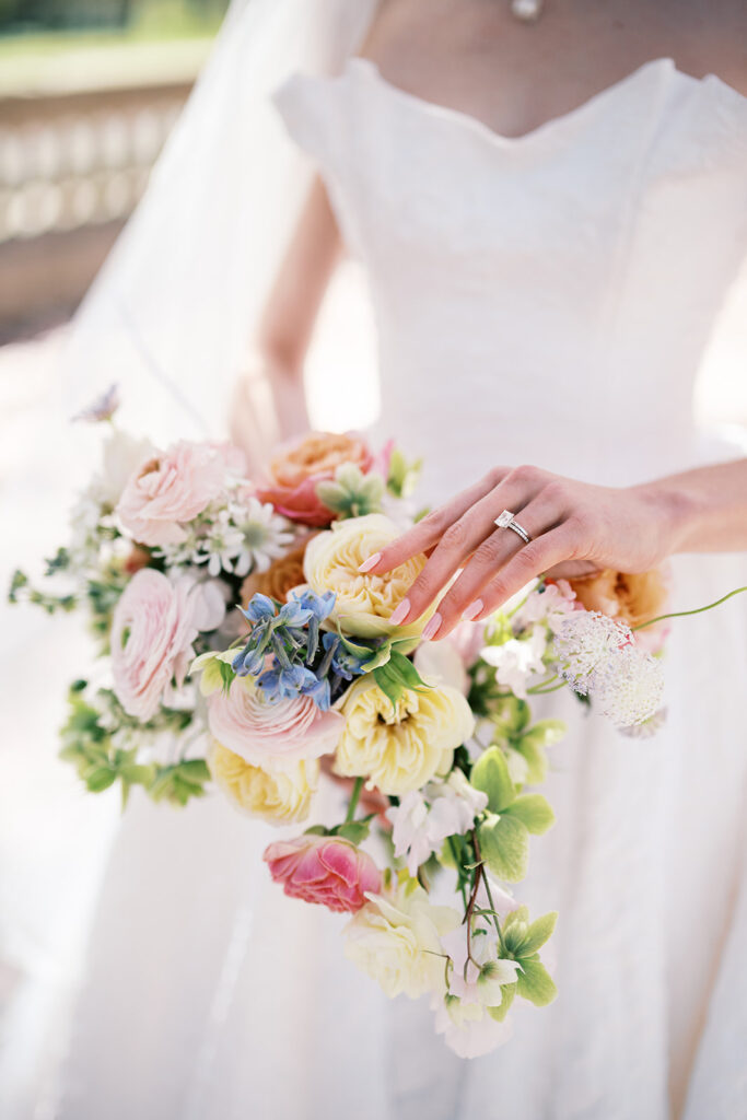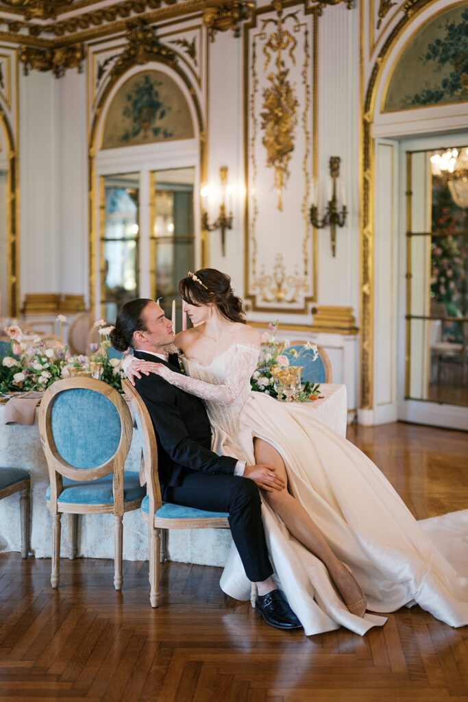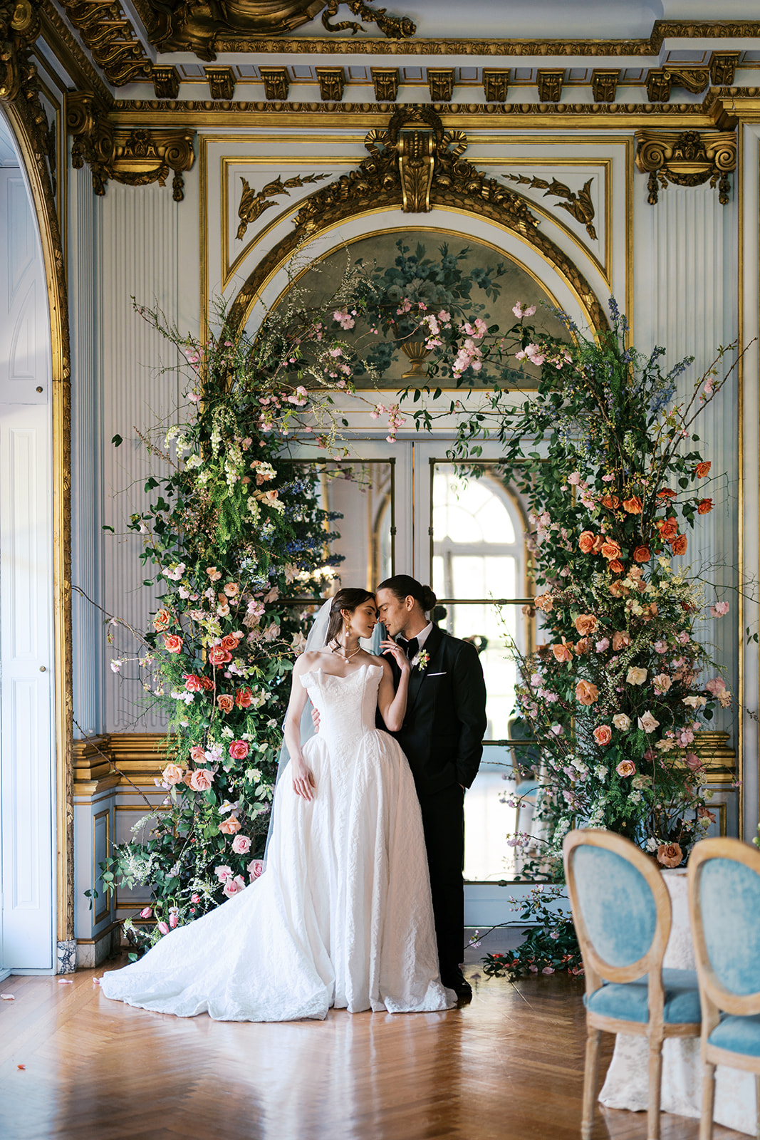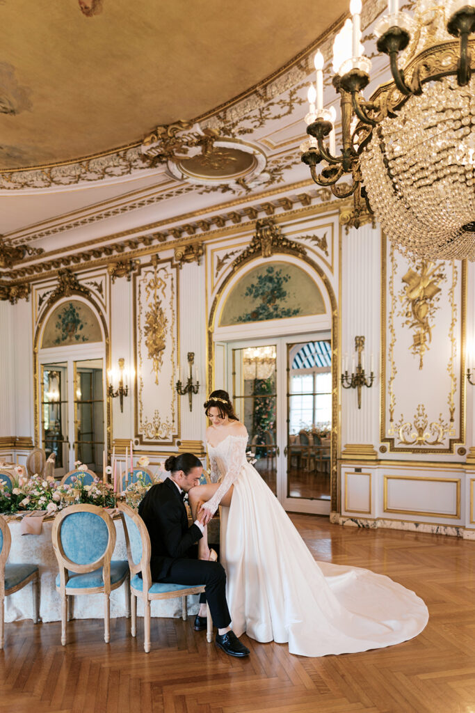 Kim Bakke of A Cottage Gardener created meadow-inspired centerpieces that truly took my breath away. Her work felt like it grew naturally out of the Music Room’s grandeur. The luxury, whimsy, and romance she brought to the space was unforgettable. The soft yet eye-catching floral designs she arranged are the perfect inspiration for your spring wedding color palette!